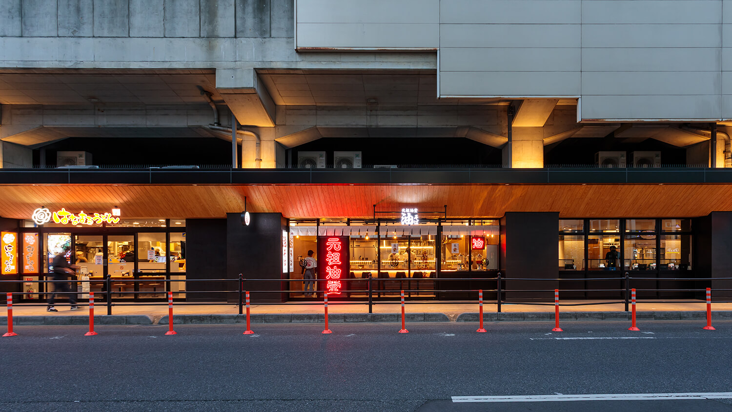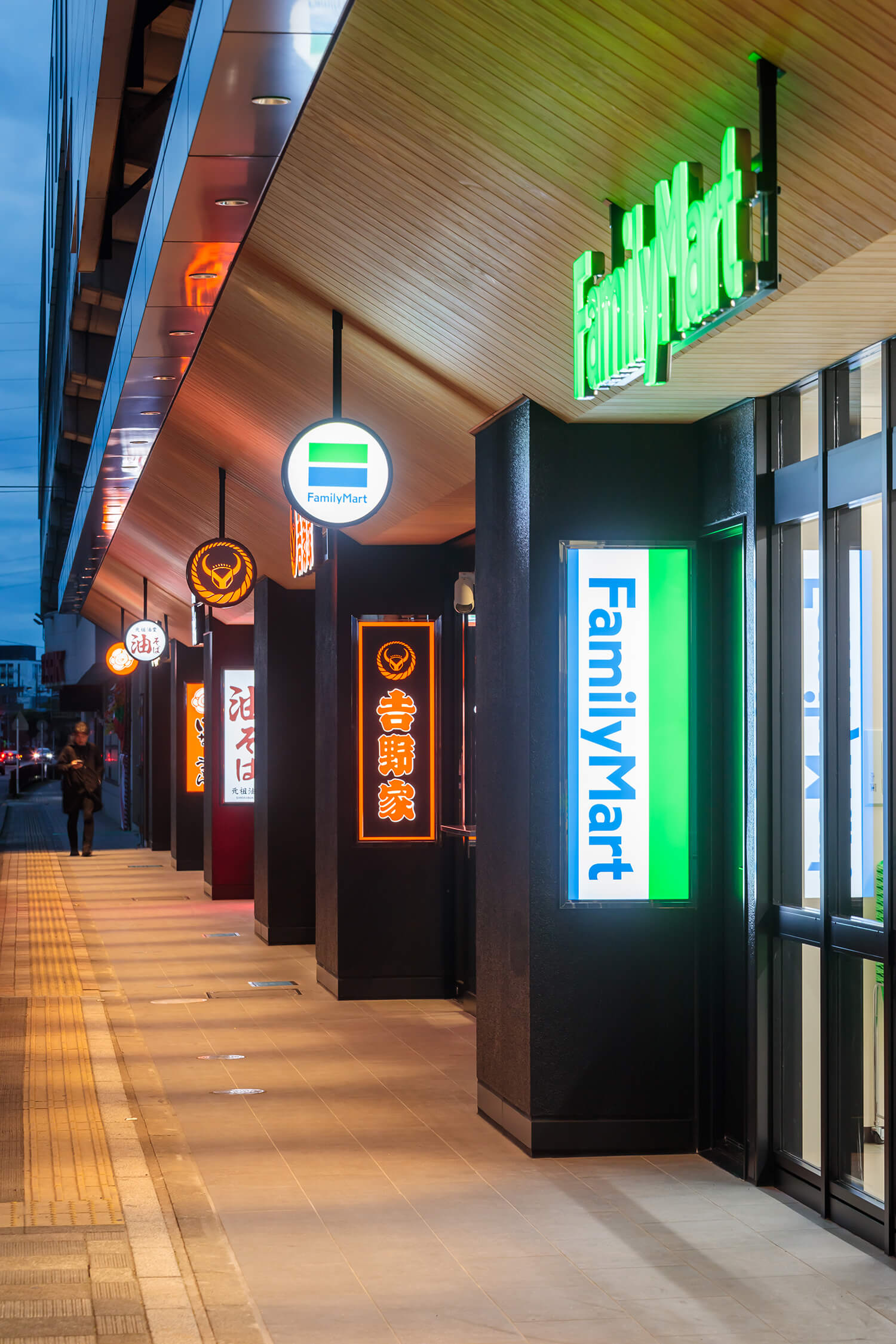 駅高架下の商業空間は、機能的である一方、無機的になりやすく、テナントは個別のサインによってのみ存在を主張しがちである。その結果、空間全体としてのまとまりを欠き、駅を利用する人々も目的のある店舗以外には足を向けにくい状況が生まれていた。