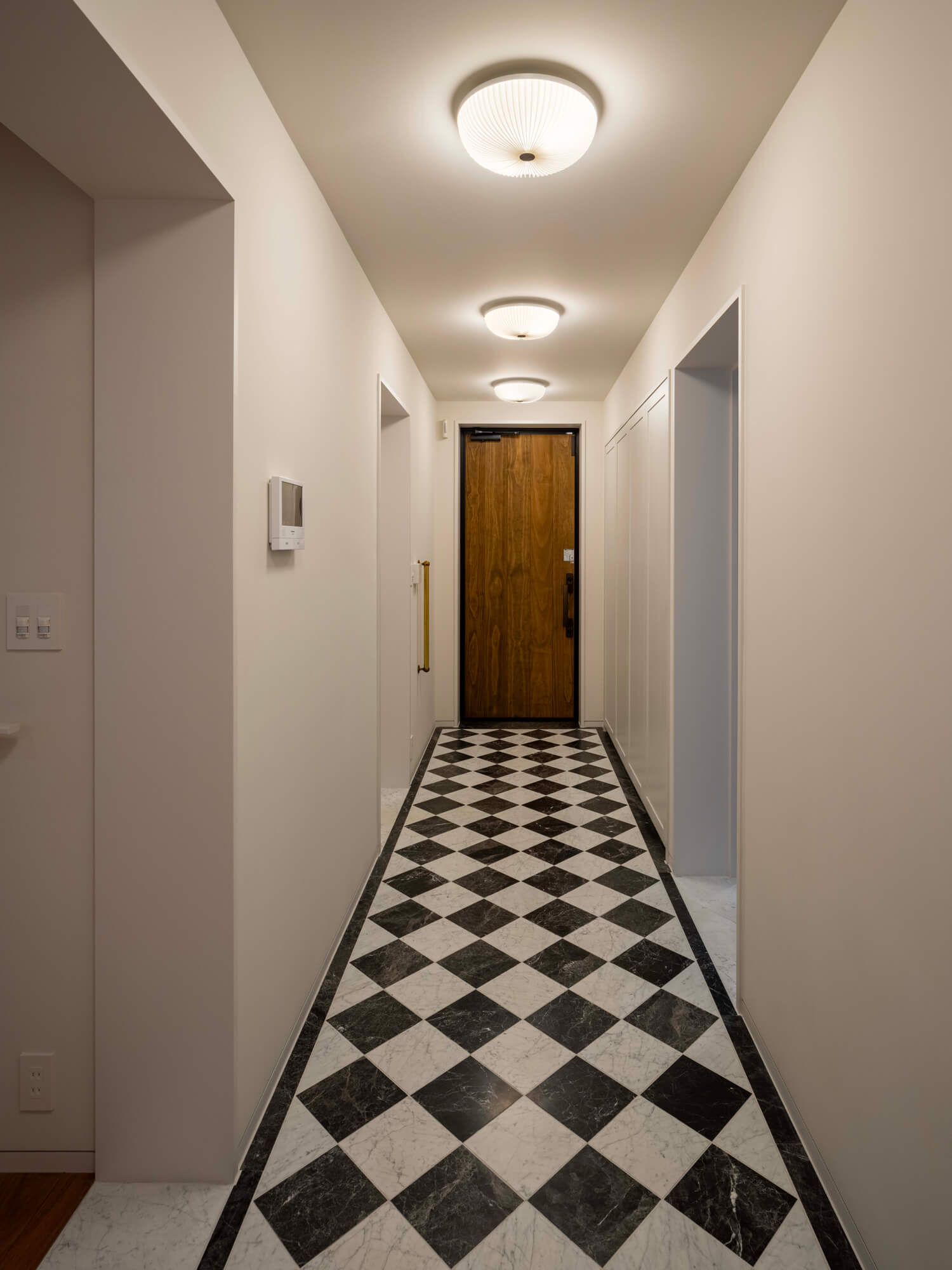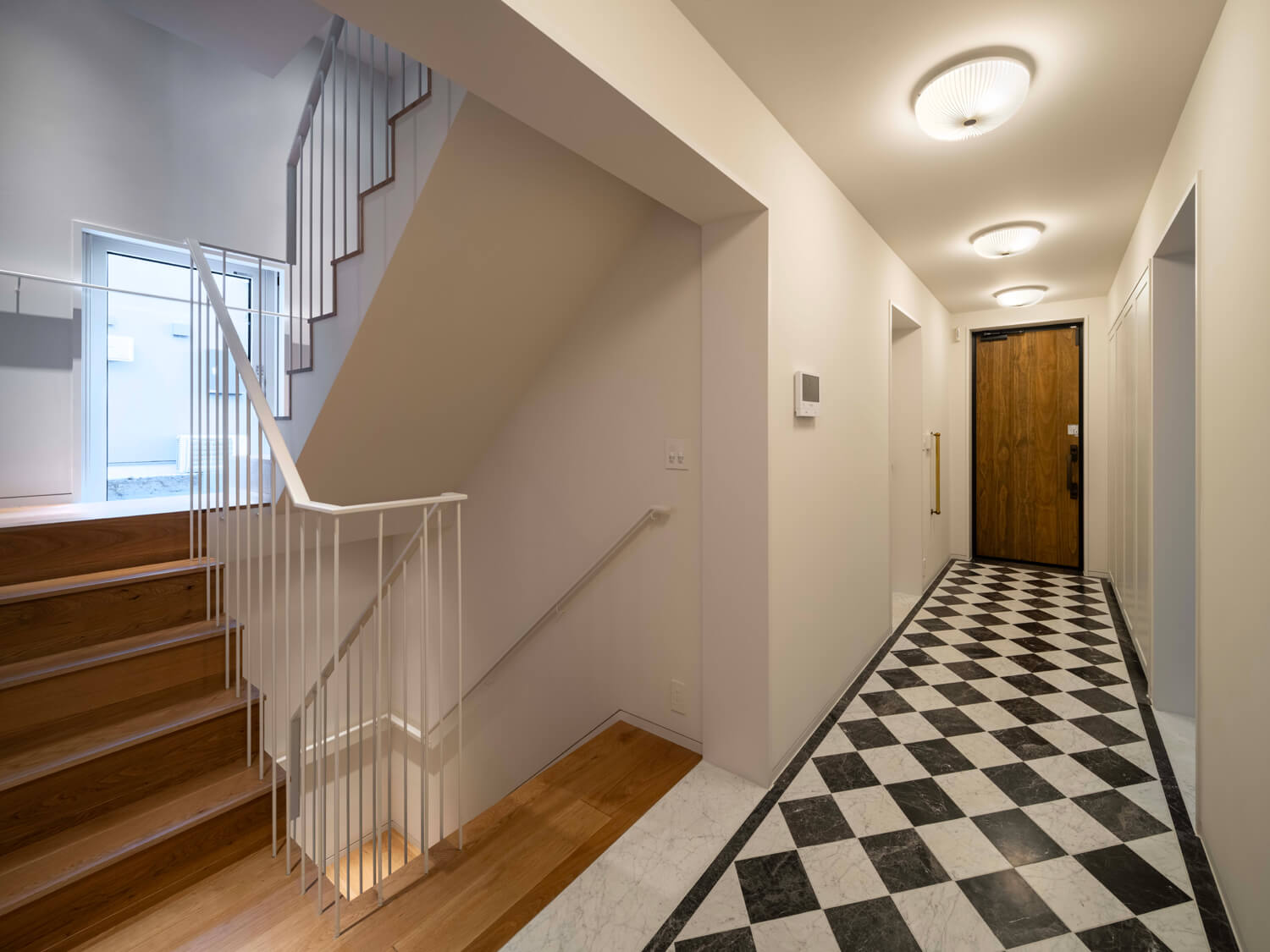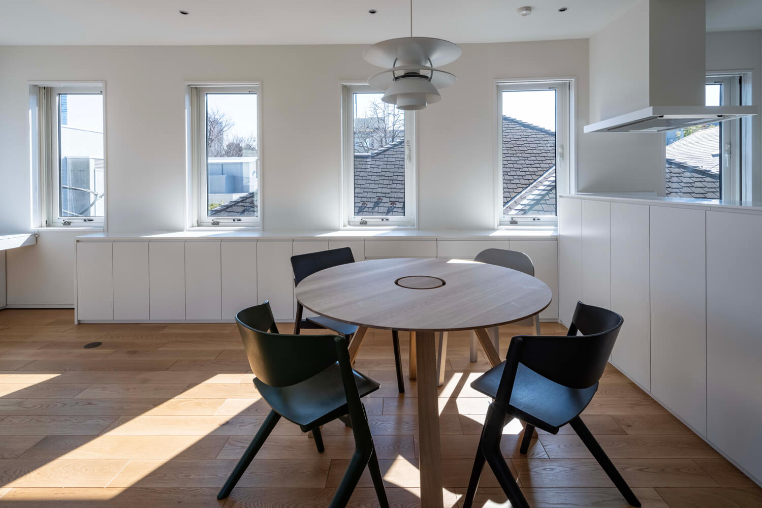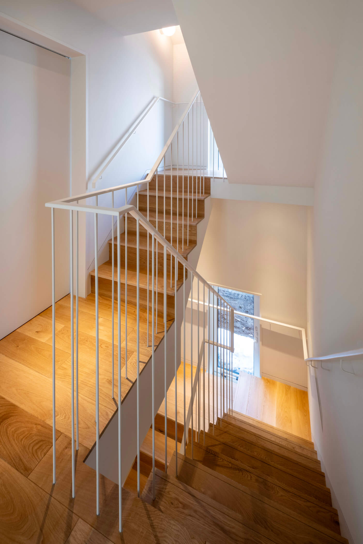 A house for two families was planned on a site divided by inheritance in a residential area of Minami Azabu, where many embassies and luxury flats are located. The site had been the home of the client’s great-grandfather, but due to the inheritance over several generations, the site became smaller and the building was closer to the street and the neighbouring land, so windows were an important theme, connecting the interior and the exterior. The internal composition of the living room, bedrooms and drawing room is overtly revealed to the outside when appropriate openings are made in accordance with the room composition. In addition, the larger openings in the living room and other rooms are fully visible from the street, and lace curtains are often closed even during the day. In this house, we tried to create windows that give a sense of openness from the inside, but do not allow the inside to be seen much from the outside. The sense of openness felt in relation to the windows is largely determined by the distance from the window. When indoors, the distance to the window is closer than when outside, so if the window has a certain width and height, it feels sufficiently open from the inside. On the other hand, from the outside, as long as you are not too close to the building, if the width and height of the window is kept to a certain extent, the interior is not too visible. In addition, the windows were arranged as homogeneously as possible so as not to reveal the internal composition. Each internal room gains as many openings as necessary alongside the exterior facing wall to bring light and air inside. Windows of this size do not allow much insight into the interior from the outside, even when the blinds are not closed, but from the inside the outside is clearly visible, providing a sense of openness while ensuring privacy. By rotating these homogenous windows to the side of the facade facing the neighbouring property, it is possible to respond to any changes in the situation of the neighbouring property. The aim was to create a house that is neither autonomously isolated from its surroundings nor autonomously open to its current surroundings, but autonomously closed and open at the same time, so that it can be lived in the city in abundance.