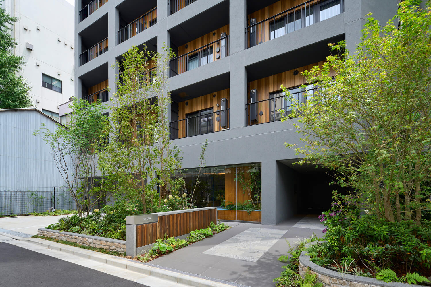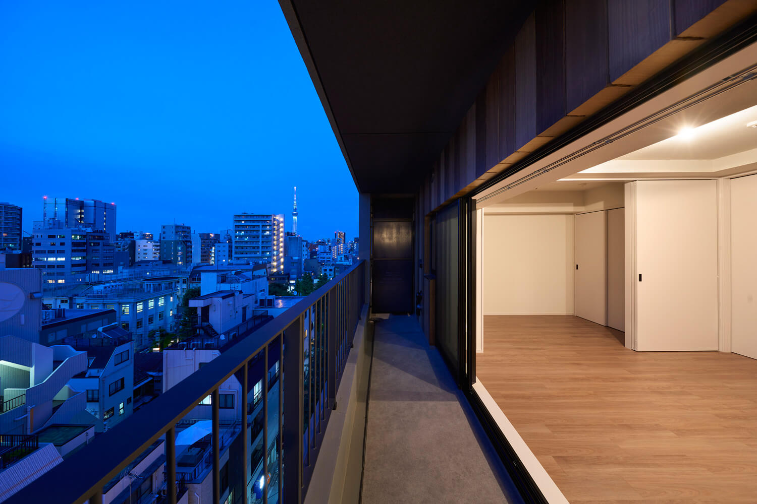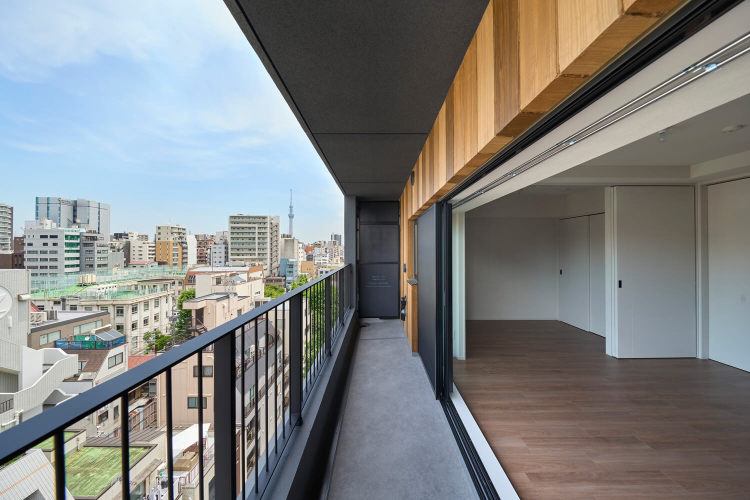 Located just a 3-minute walk from Shin-Okachimachi Station, this 9-storey apartment building comprises 39 units. Surrounding the area are traditional warehouses and small factories that have been in operation since the Edo period, creating a grid-like layout of low-rise buildings that still retain the charm of a traditional downtown neighbourhood. In recent years, the construction of high-rise apartments has been on the rise, leading to a sense of scale and fragmentation of the landscape. This residential complex was conceived as an attempt to redefine the relationship between the city and housing.