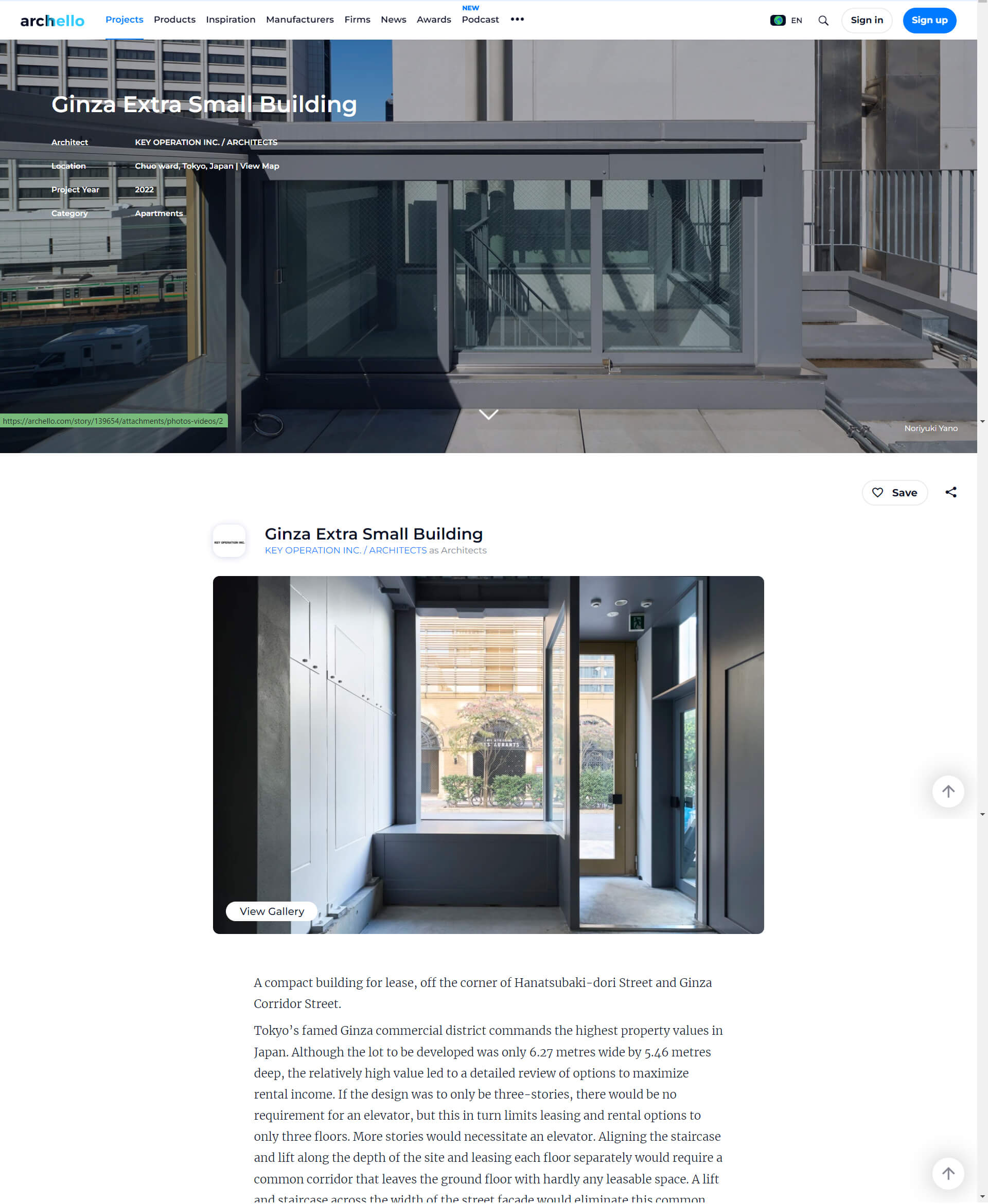 ...MORE”Ginza Extra Small Building”が「archello」に掲載されました。